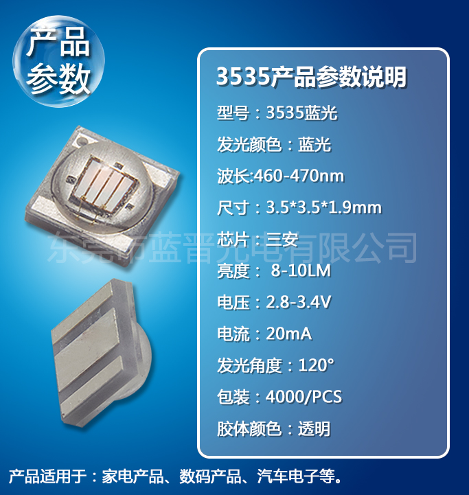 3535藍(lán)光1-3W貼片LED燈珠手機(jī)指示燈