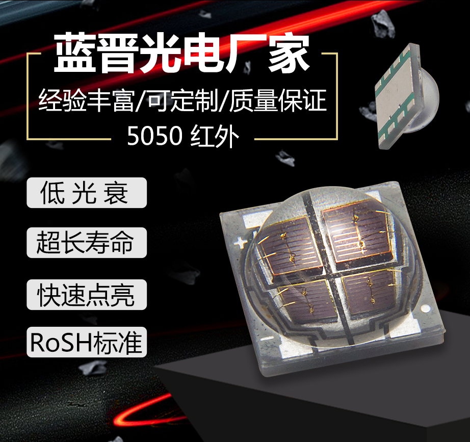 紅外燈發(fā)展到現(xiàn)在已經(jīng)歷經(jīng)三代,在發(fā)光亮度、散熱、發(fā)光角度控制、壽命上都有巨大的提高。藍晉光電專業(yè)生產(chǎn)各類LED貼片燈珠,其中5050紅外、5mm紅外、3mm紅外、50W大功率紅外、30W紅外等LED貼片燈珠也廣泛被使用。