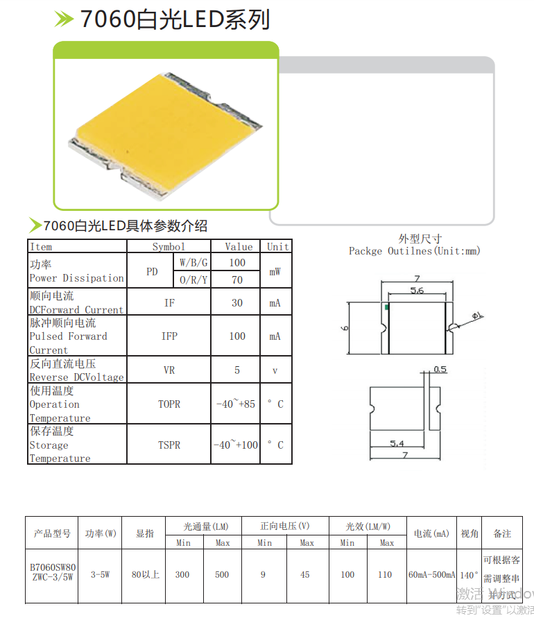 SMDLED7060、大功率1W白光-暖白-正白-冷白(80-90LM 90-100LM 100-110LM),采用進口芯片,質量保證,顏色也可選其它光。也可來樣調配,價格優(yōu)惠!