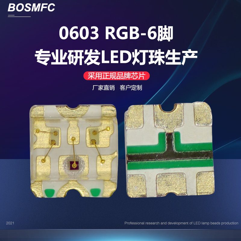 8、0603rgb燈珠封裝:純金線,銅支架。