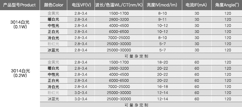 3014側(cè)發(fā)光具體參數(shù)如圖: