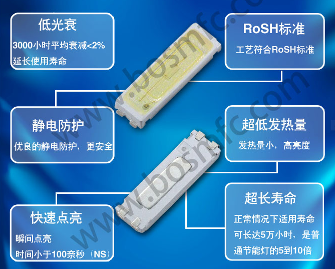封裝特點(diǎn):硅膠一直是影響LED質(zhì)量與壽命的主要因素之一,我司使用的軟硅膠體,屬于高導(dǎo)熱,高性能,降低燈本身的光衰,提高發(fā)光效率。