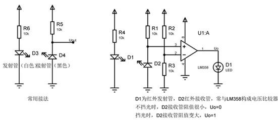 藍(lán)晉光電廠家教大家紅外發(fā)射和接收管常用的使用方法(如下圖),藍(lán)晉光電廠家技術(shù)工程師表示在使用的時候,這兩個元器件必須正對,不能有偏移,并且間距要很小。紅外發(fā)射和接收管常用比較器進(jìn)行組合使用,一般是LM358。