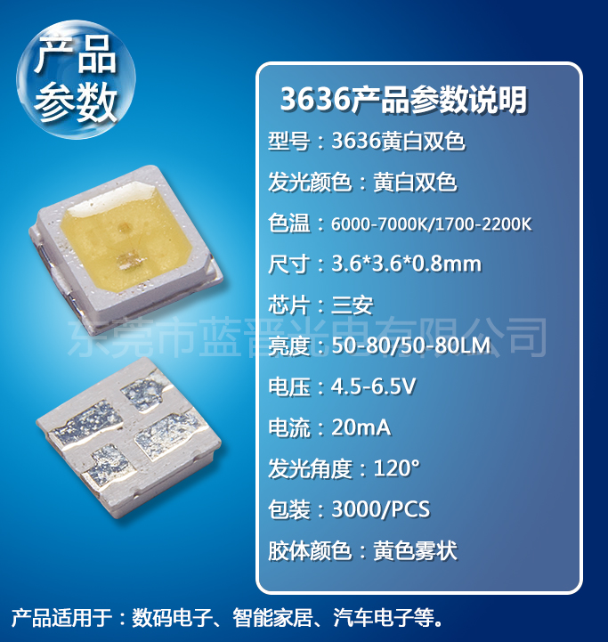 3636黃白雙色LED貼片帶IC室內(nèi)照明LED燈珠