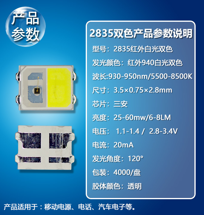 2835紅外940+白燈雙色